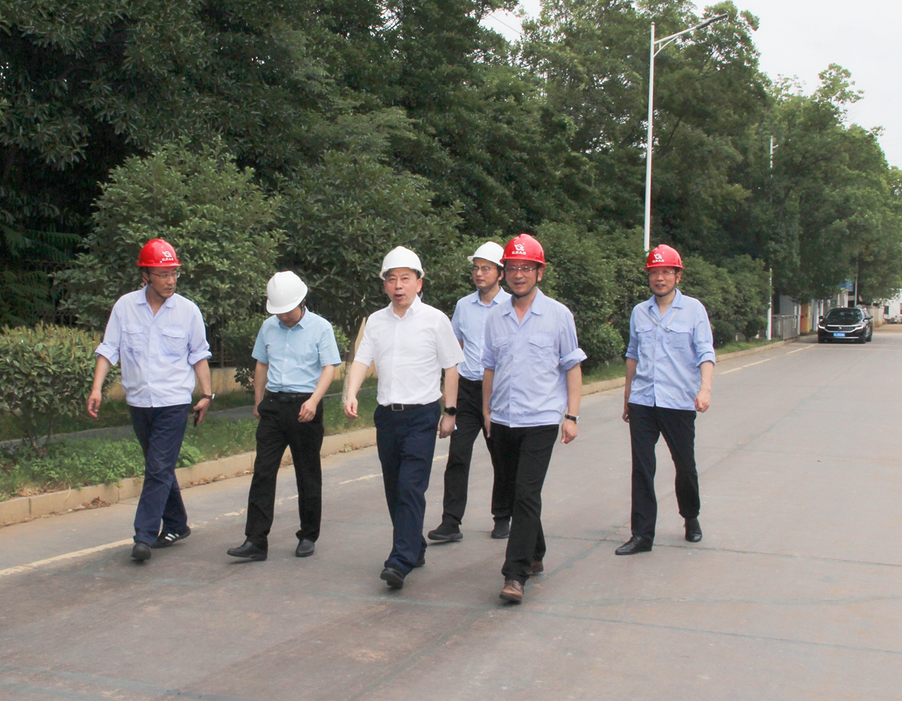 新區(qū)管委會(huì)主任尹衛(wèi)民攜相關(guān)部門來(lái)公司調(diào)研,他首先來(lái)到了水洗生產(chǎn)現(xiàn)場(chǎng),認(rèn)真察看了生產(chǎn)情況。